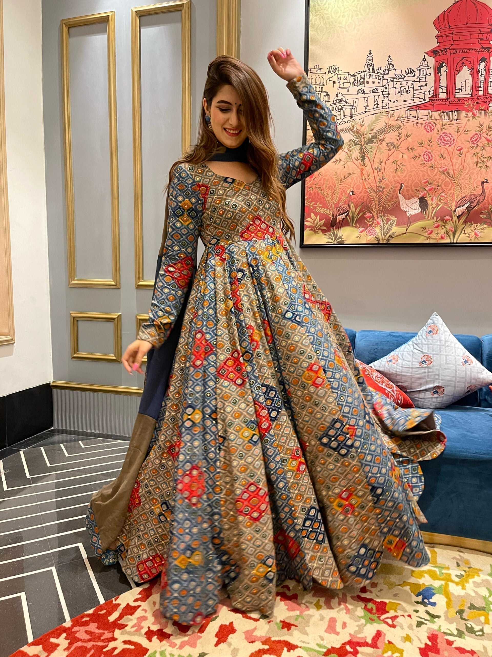 Aleena grey bandhej maxi set