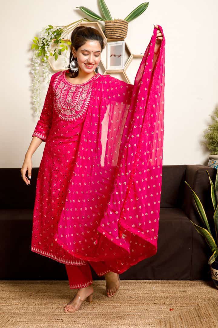 Straight fit Kurta with cotton Rayon mix with Embroidery.