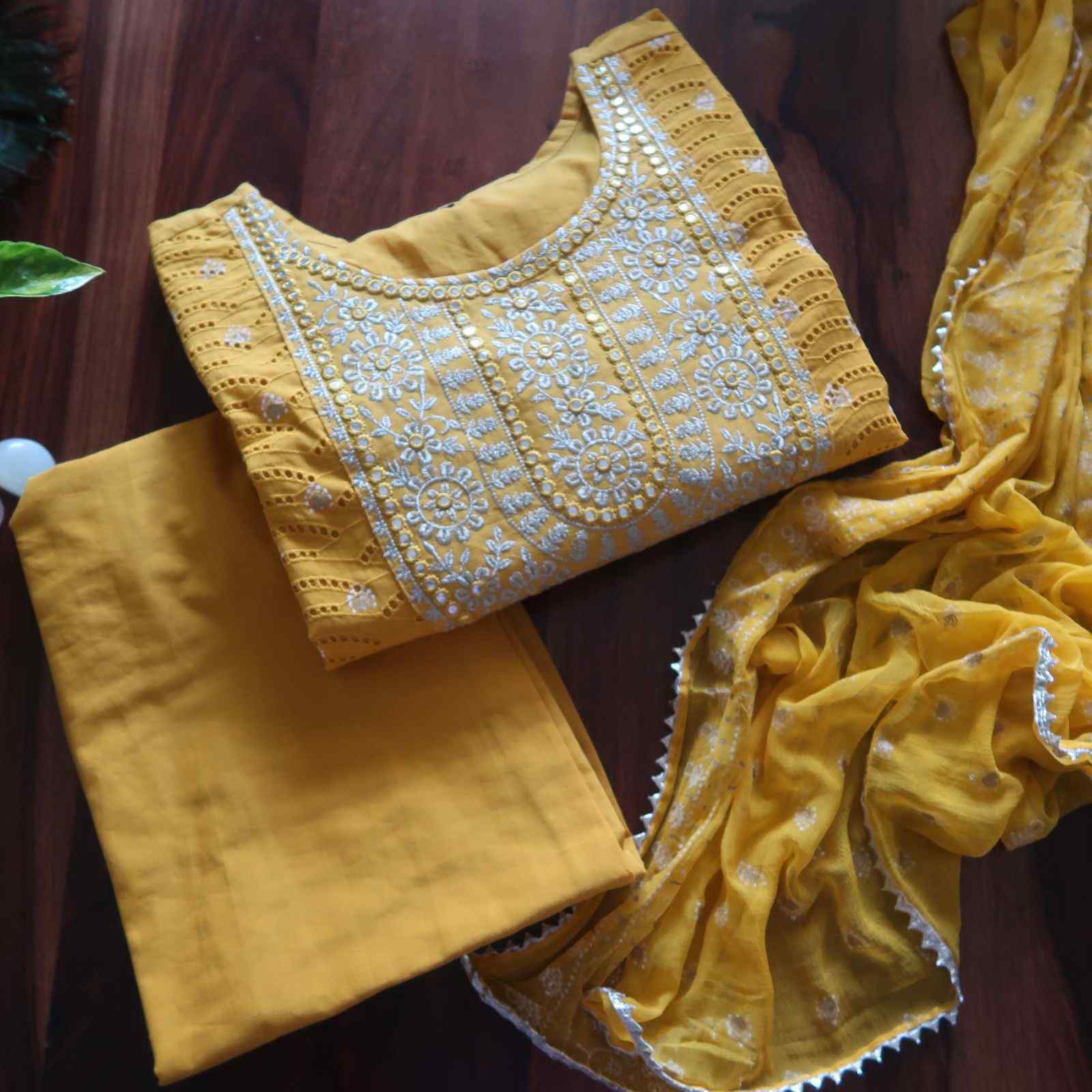 Cutwork Floral Embellished Suit Set (3 Piece)