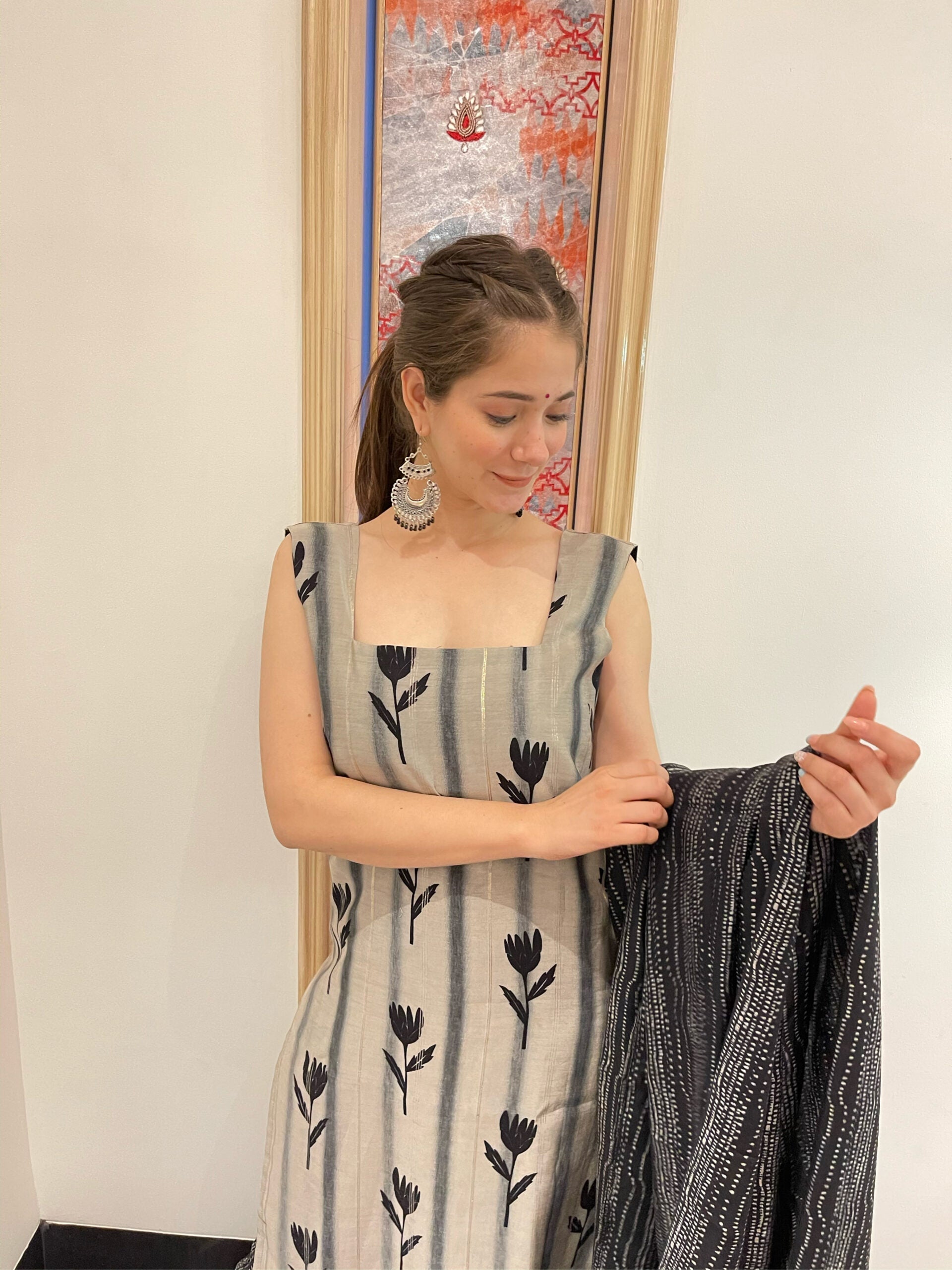 pamper yourself on a bright summer day with this absolutely gorgeous suit set made in muslin cloth.!