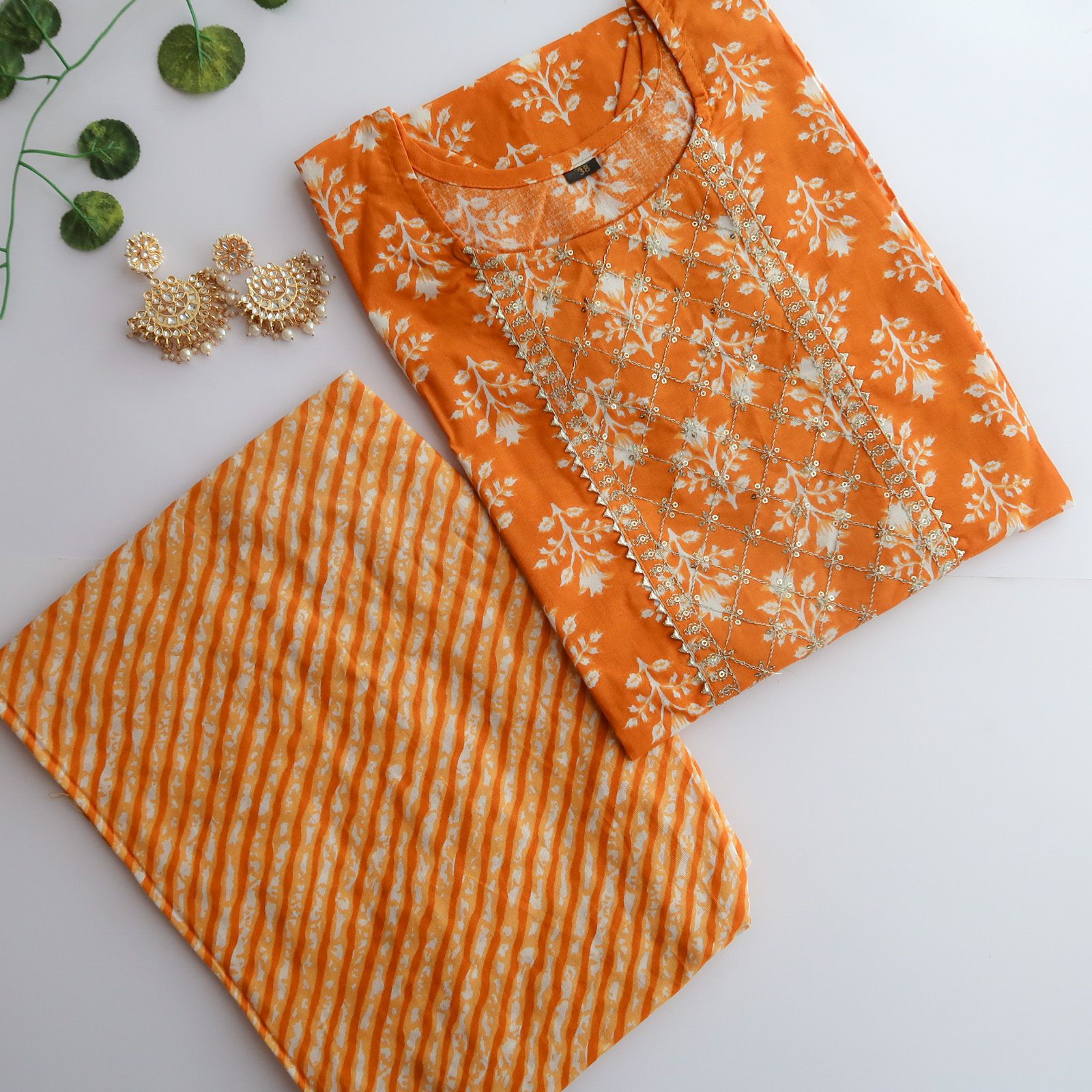 cotton kurta with cotton pants, Half drawstring and half elastic closure.
